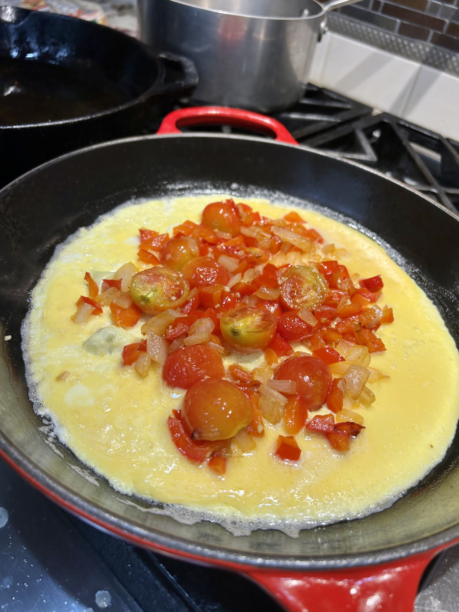 You can change up the filling ingredients as you like. The key here is the American cheese, which is super melty, and tastes great in an omelet.