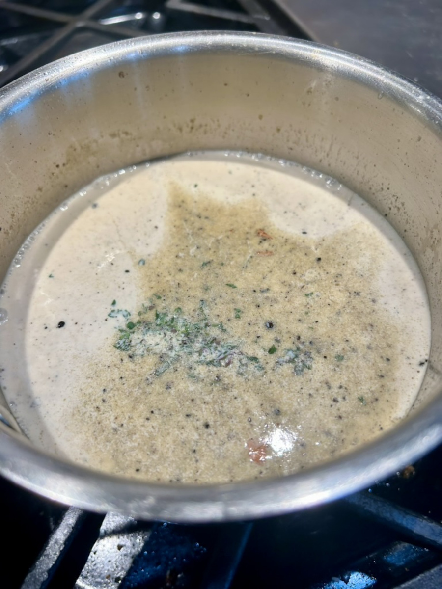 Stir the heavy cream into the sauce. Bring to a fast simmer, then reduce heat to medium-low.
