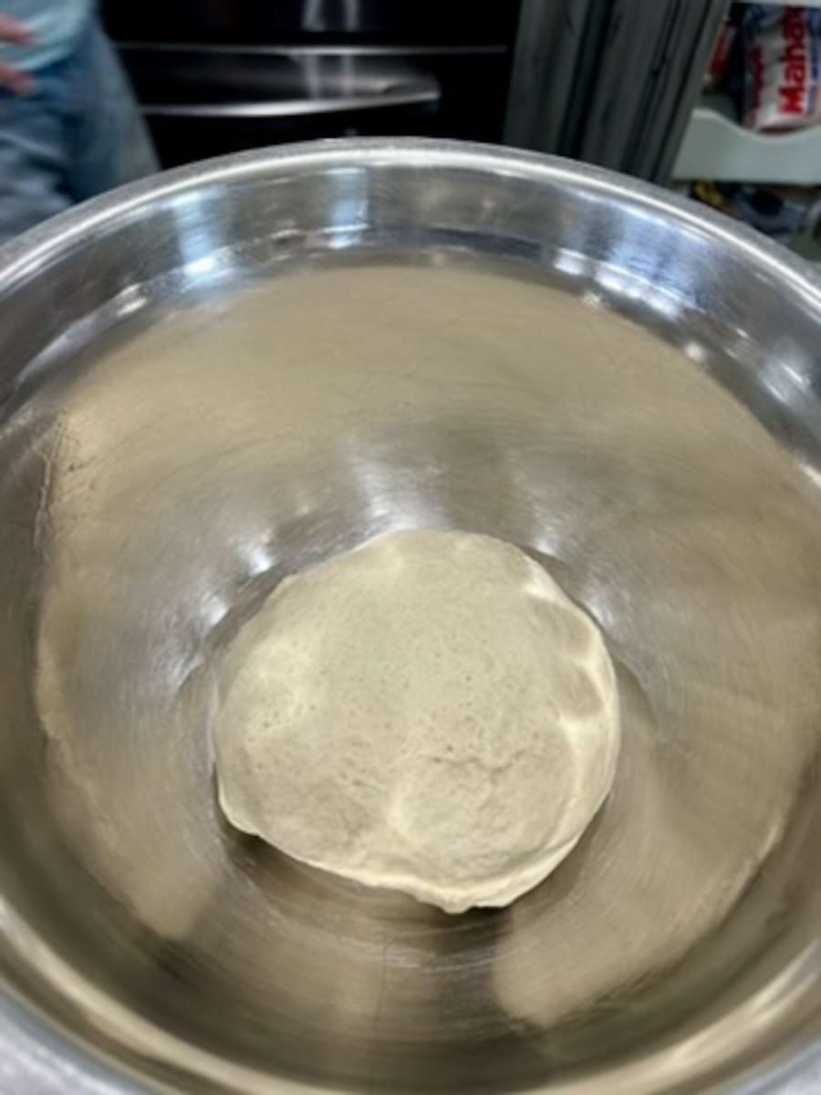 Use a stand mixer to mix all dough ingredients into a large, greased bowl. Cover with plastic wrap or a dish towel. Let it rise in a warm, damp place until doubled in volume.