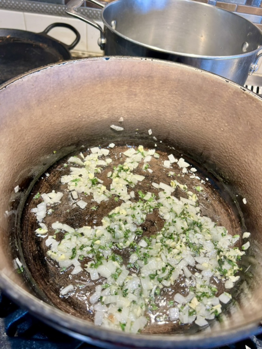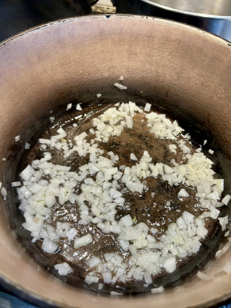 Add the chopped onion with a pinch of salt. Sauté until onions are translucent.