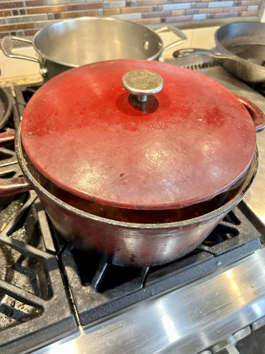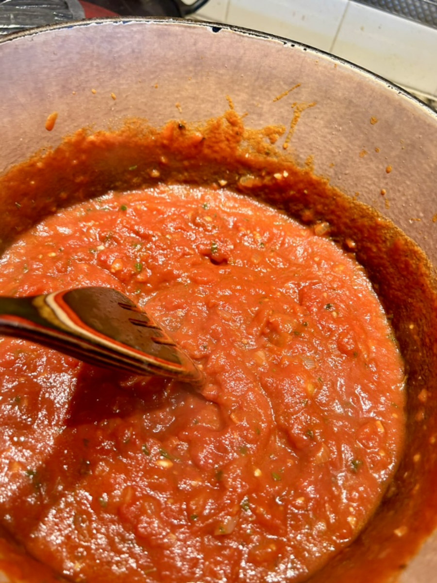 Reduce the heat to simmer. Partially cover and simmer for 1 hour. Give it a stir every 20 minutes or so to keep the sauce from scalding.