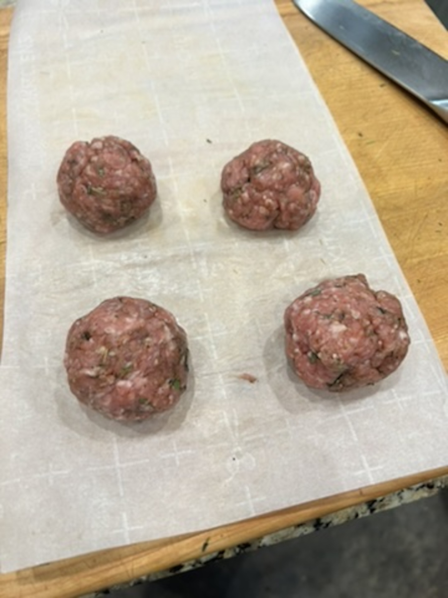 On a piece of parchment paper, form ¼ cup meatballs from the ground pork mixture.
