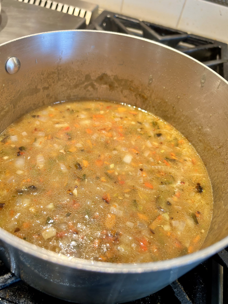 Stir to incorporate. Bring to a boil, then reduce to a simmer.