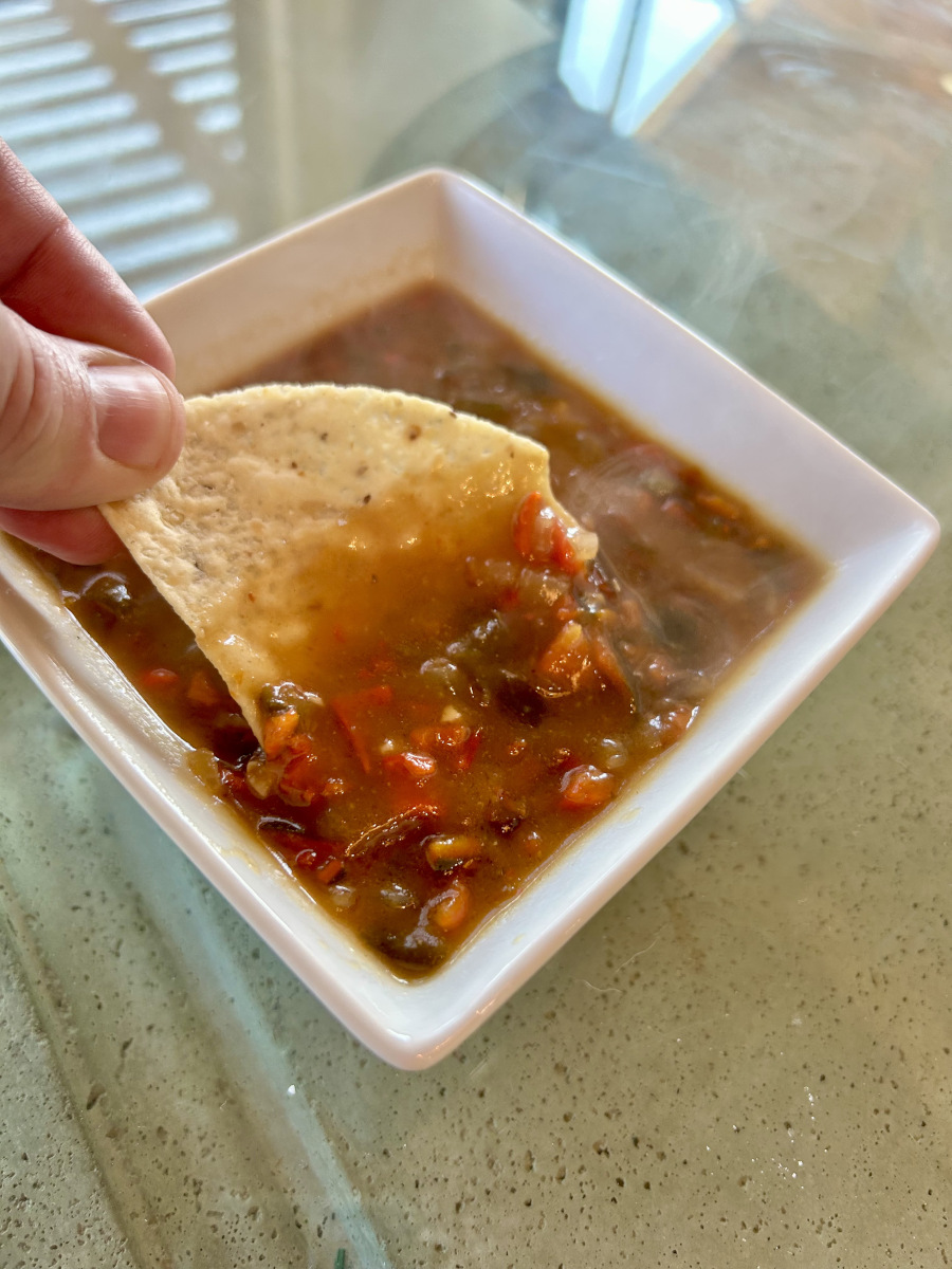 Add the chopped poblanos and salt to the sauce, then stir to incorporate.