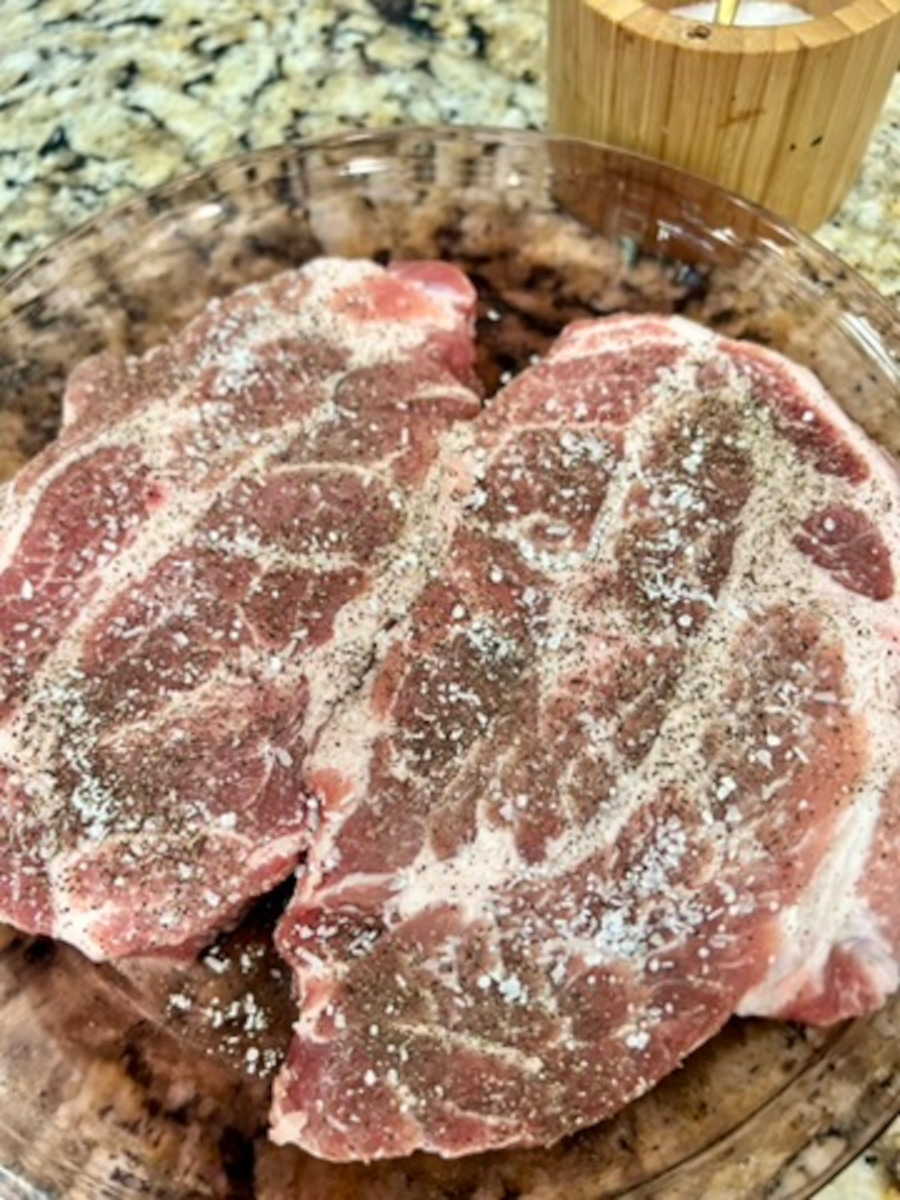 2 coppa steaks, 1 tbsp kosher salt, 1 tbsp black pepper