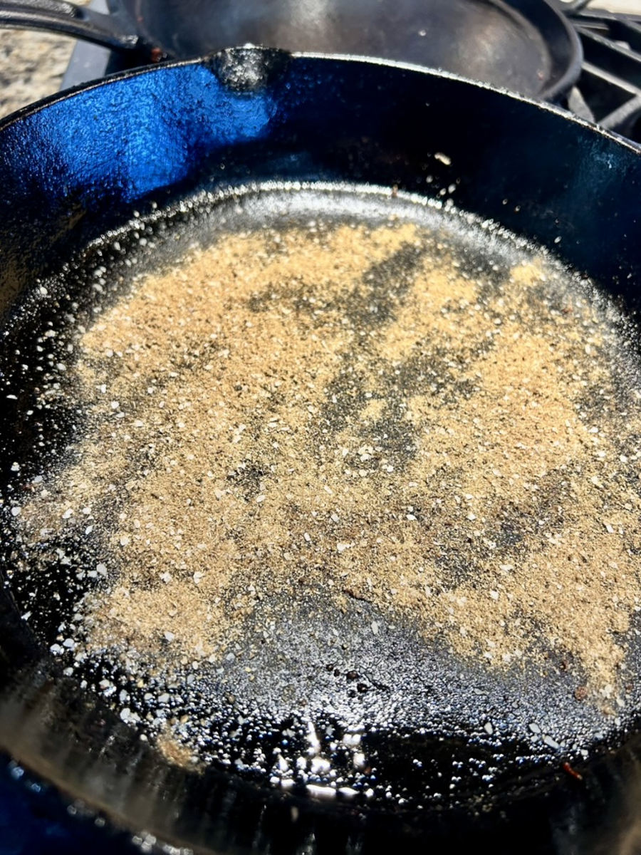 Add Tex-Mex Spice Blend directly to the hot oiled skillet.