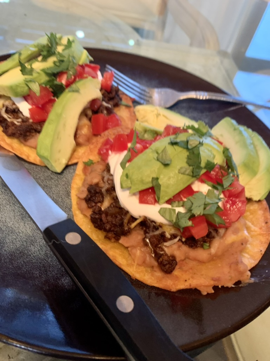 Bake for 5 minutes, then remove to serving plates. It's ok if the cheese is slightly charred. Top with sour cream, diced tomatoes, and cilantro. Serve hot.
