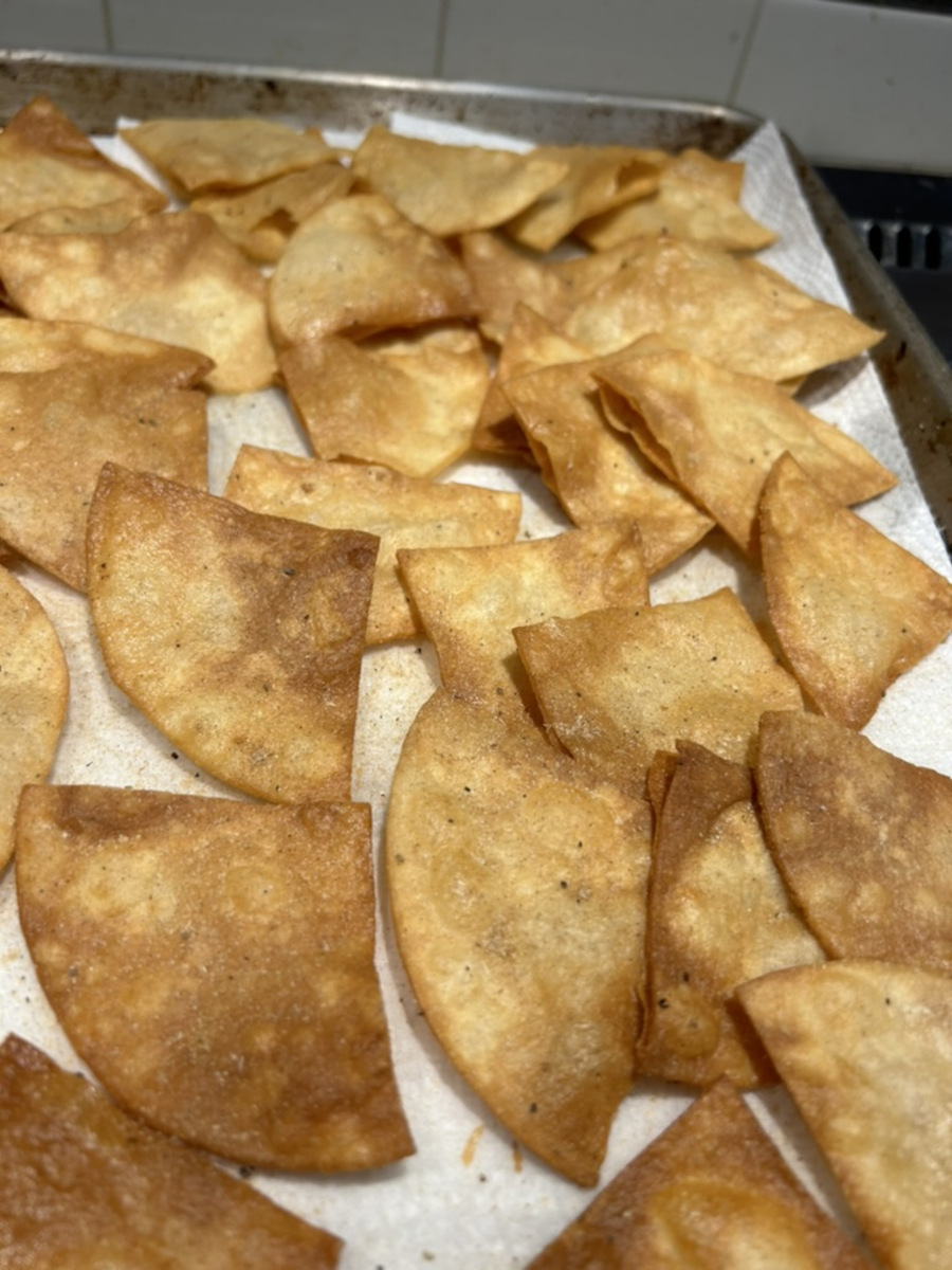Remove tortillas to a cookie sheet lined with paper towels to drain excess oil. Repeat until all the chips are fried, then sprinkle the Tex-Mex spice blend onto the chips while they are still warm.
